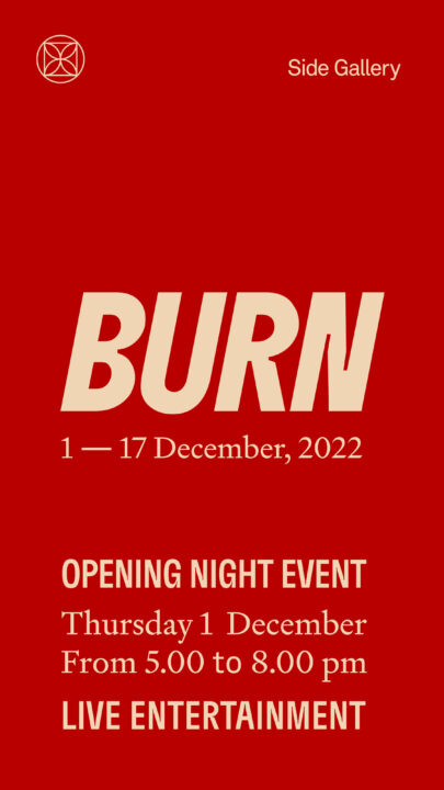 The annual Side Gallery's end-of-year show is titled ‘Burn’ for this year's iteration, which will run from December 1 — 17, 2022.