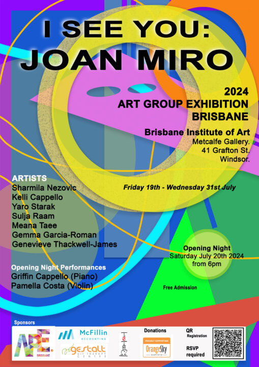 Something different - inspired by the iconic 20th-century Catalan-Spanish artist, Miró, "I See You: Joan Miró" features the works of seven Australian artists, presenting a broad range of disciplines, including paintings in oils and acrylics, ceramics, bronze sculptures, textiles, and more.